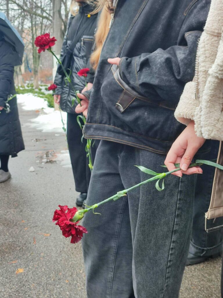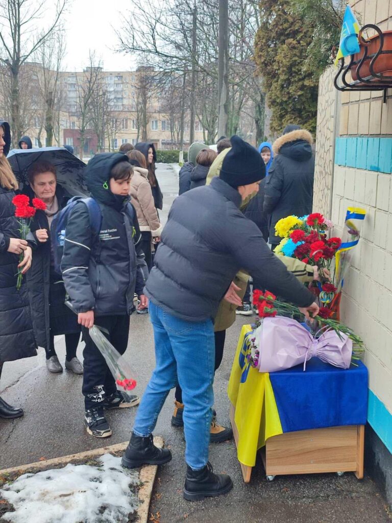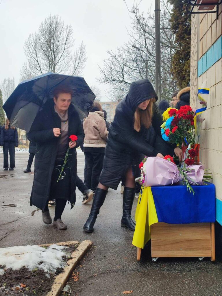 Учні та працівники гімназії зібралися, щоб вшанувати пам’ять загиблих, схилити голови у хвилині мовчання та висловити вдячність усім, хто боронив і боронить нашу свободу. Пам’ятаємо. Цінуємо. Переможемо.